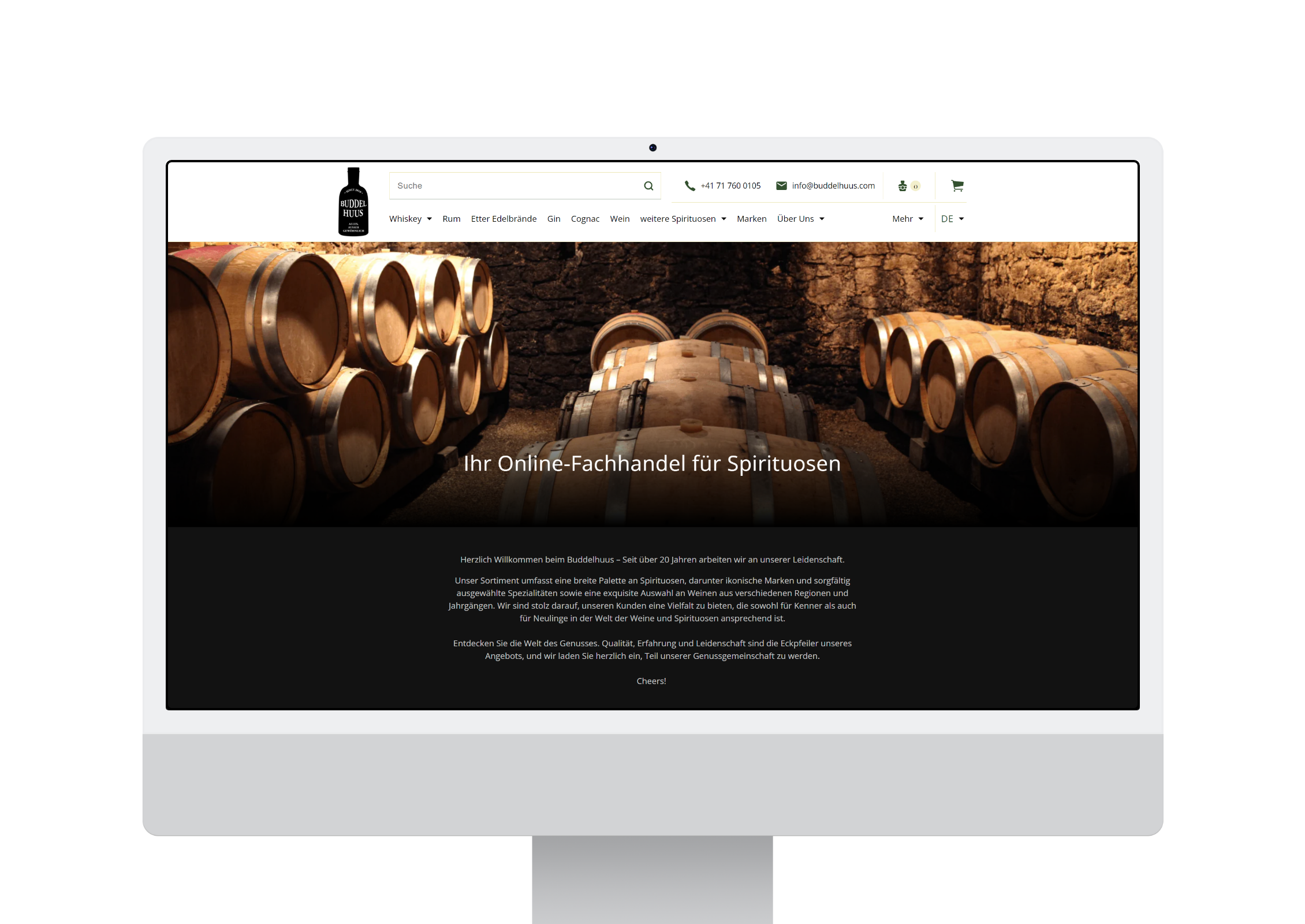Whiskey, Rum, Cognac und Gin... Bei Buddelhuus aus St. Gallen findet man viele Köstlichkeiten. Wir dürfen diesen Kunden seit 2021 betreuen und mit mit ihm wachsen – und durften in diesem Rahmen auch ihren Onlineshop für sie umsetzen. So können ihre Kunden unkompliziert bestellen und innerst kürzester Zeit mit ihren Buddelhuus Spirituosen anstossen!