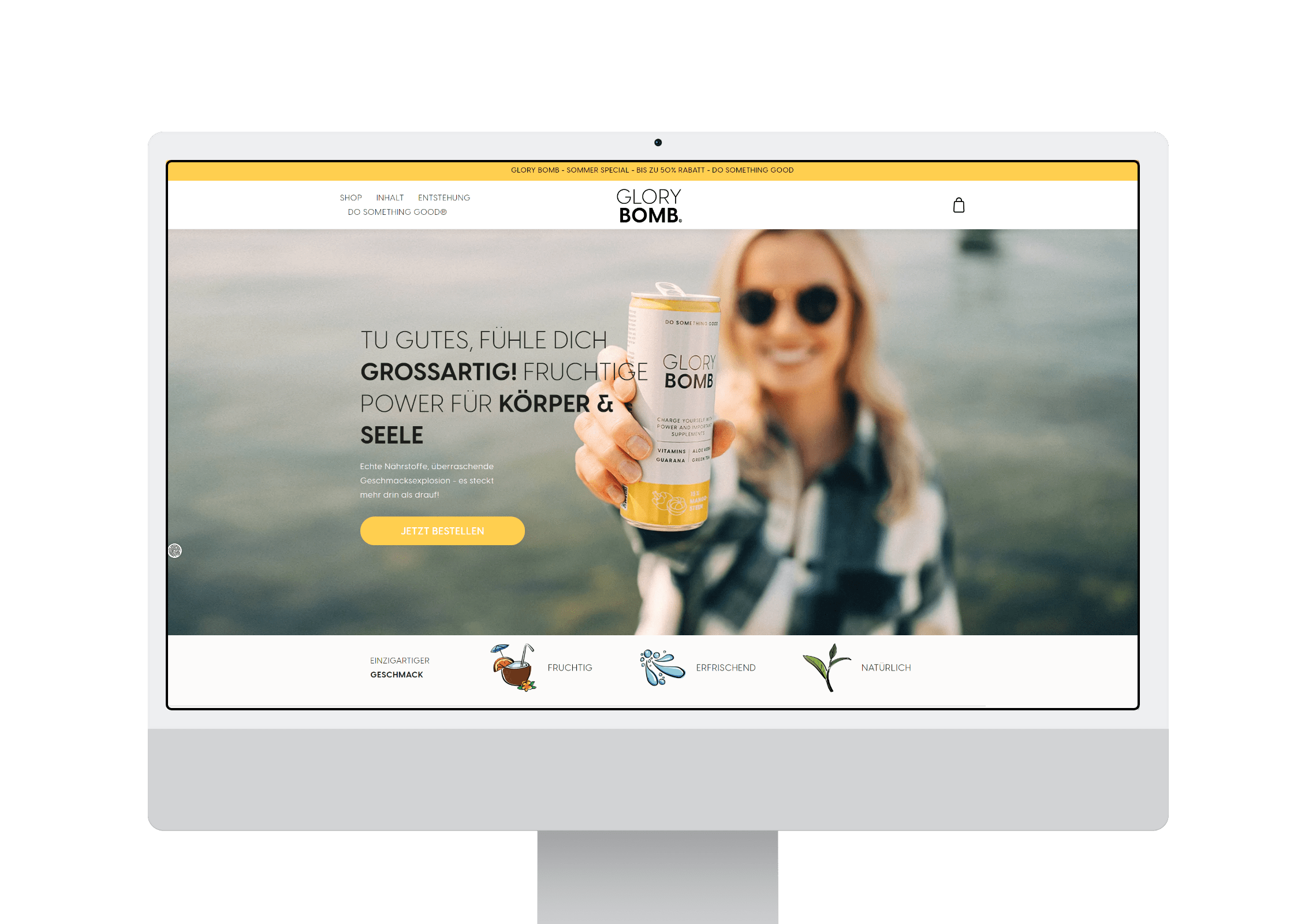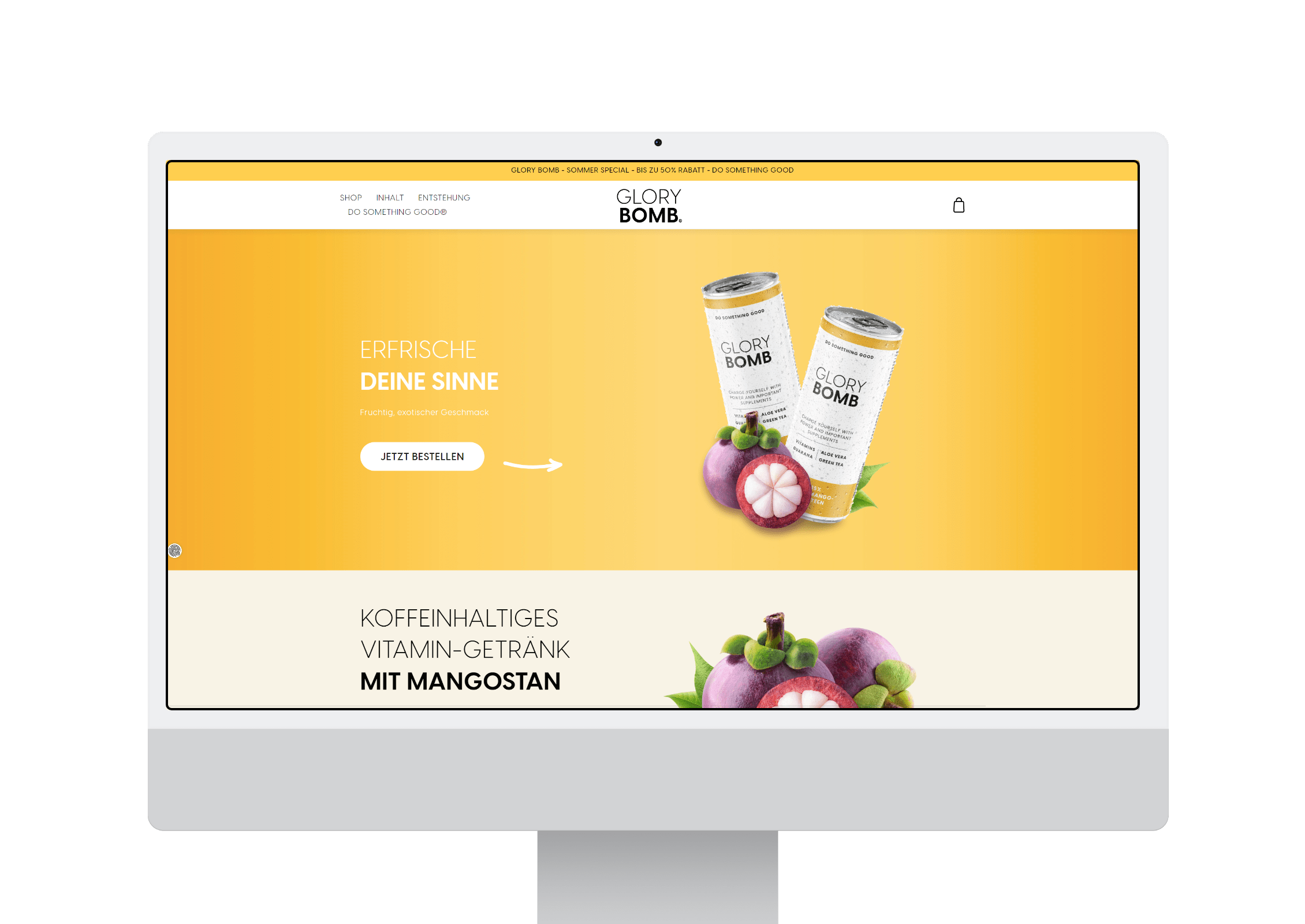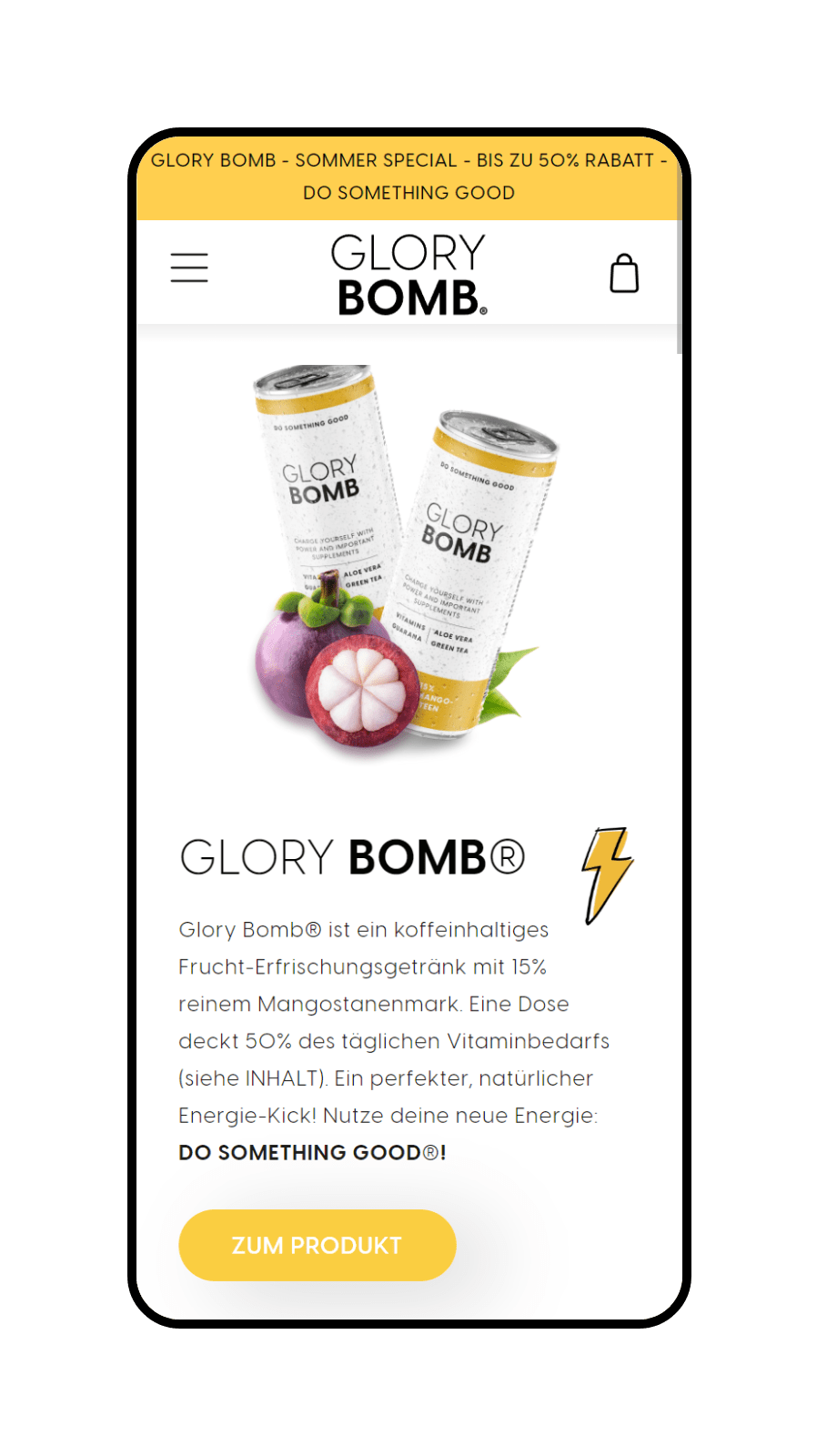 Webshop-Erstellung für das Frucht-Erfrischungsgetränk Glory Bomb