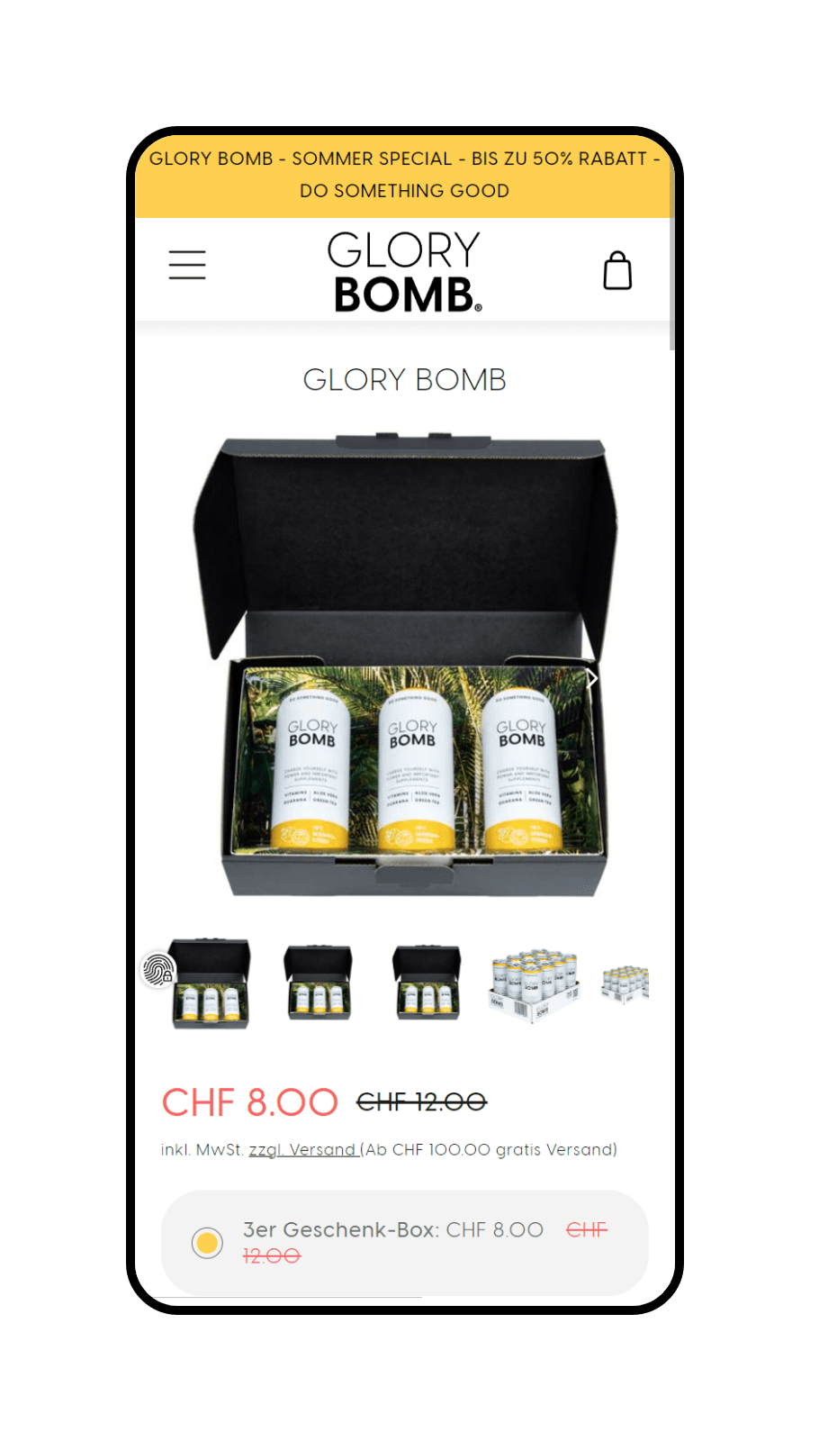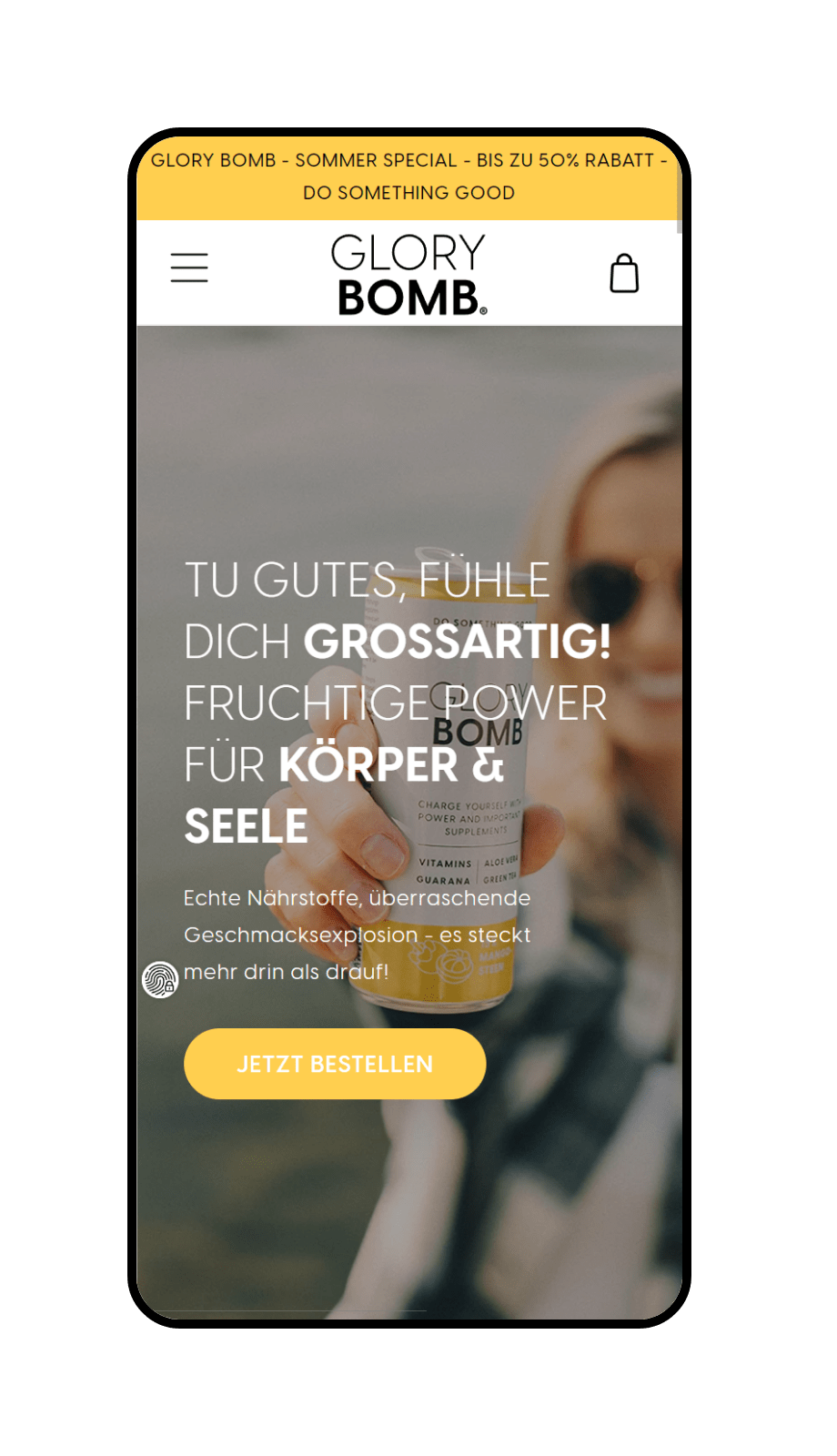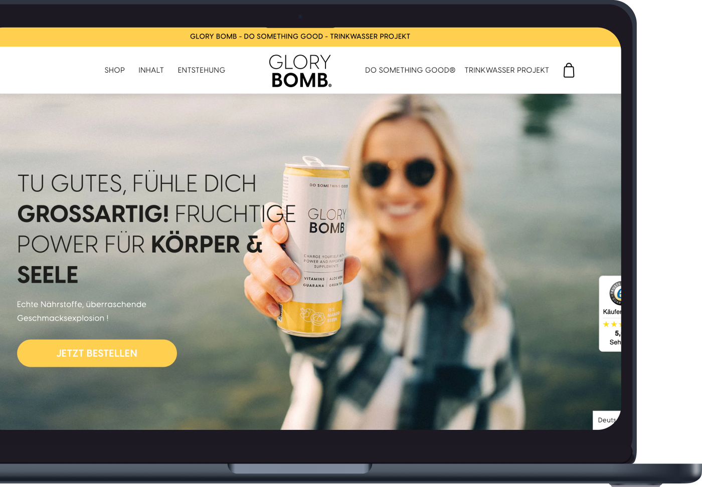 Webshop-Erstellung für das Frucht-Erfrischungsgetränk Glory Bomb