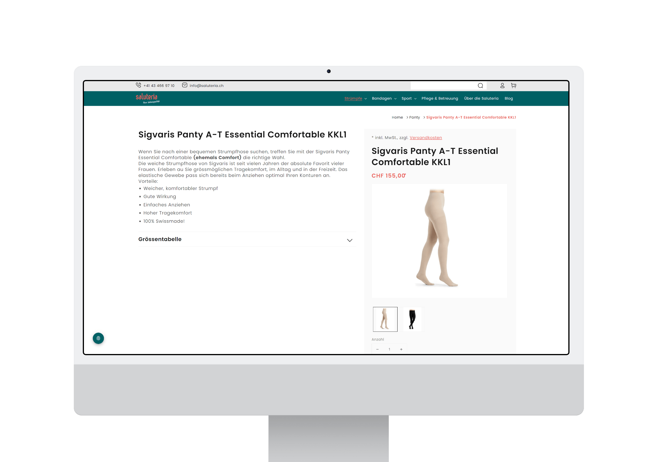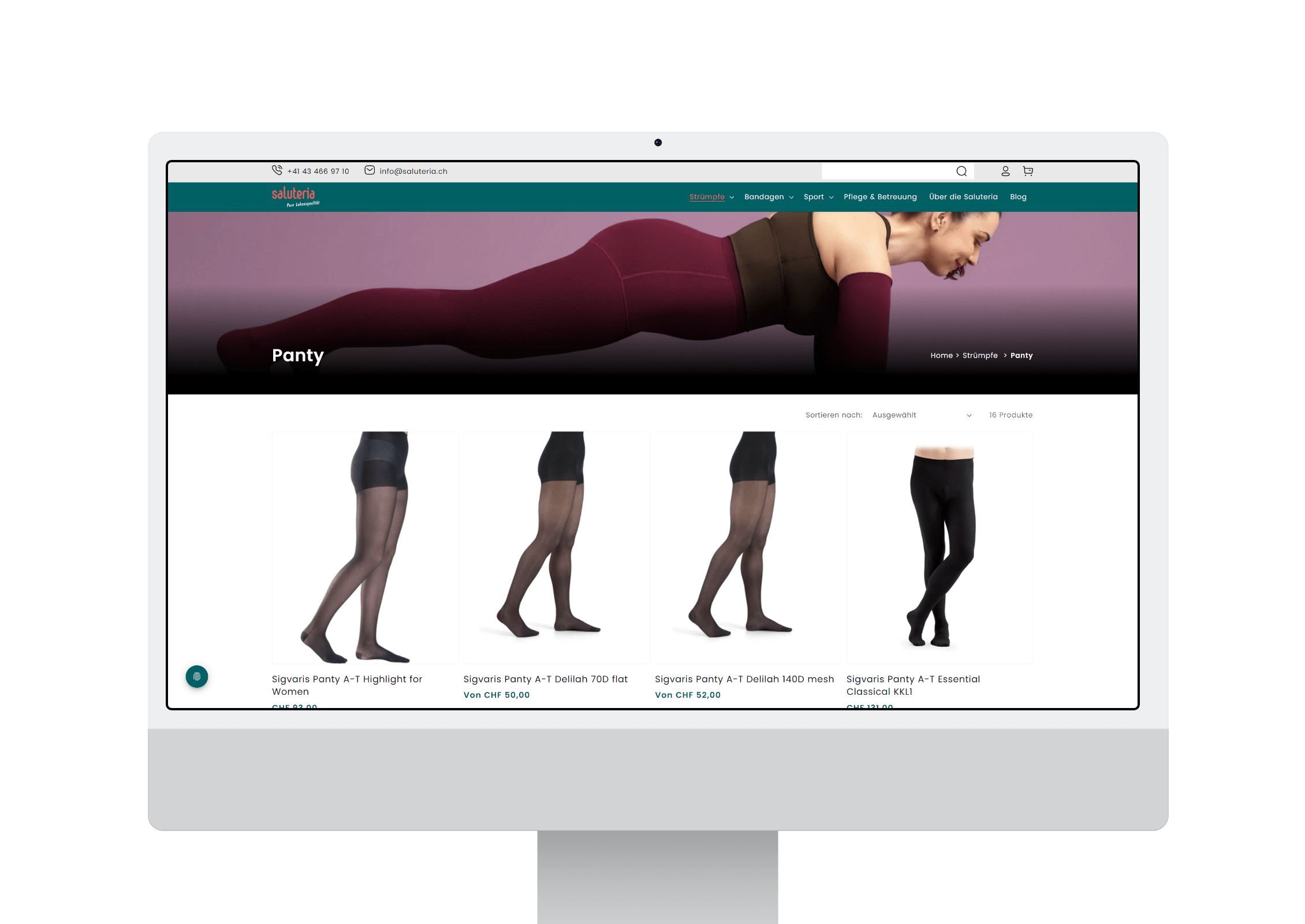 Webshop für das Strumpf- und Bandageunternehmen Saluteria